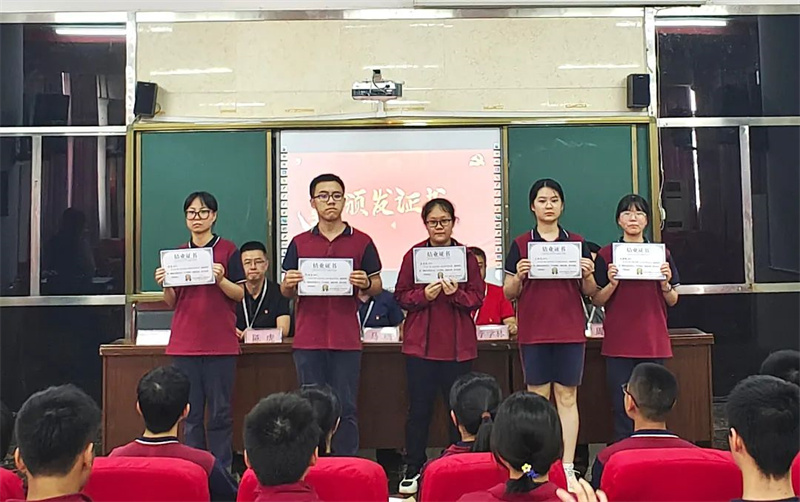 优秀学员代表高2023届1班陈泓宇同学发言,他表示将继续努力,以身作则,在以后的生活和学习中不断奋进前行,争取早日加入伟大的中国共产党。