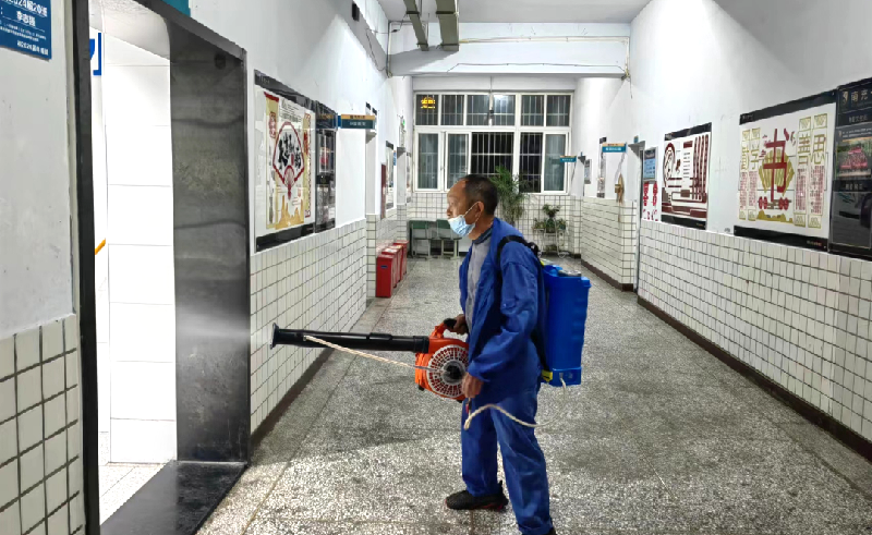 保洁人员对全校进行了全面的卫生清洁工作,对校园内草坪树木绿化进行修剪,教学楼内枯死植物进行处理;对学校进行了全面清理进行彻底清洁、消毒。