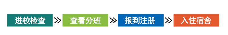 教学楼C、D区和E区找到自己所在班级教室,向班主任报到注册,办理相关手续,流程如下: