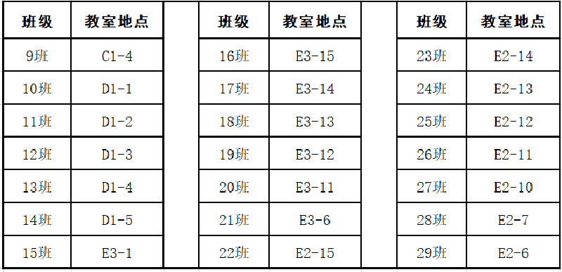 南充一中教学楼CD区1楼,E区2、3楼教室