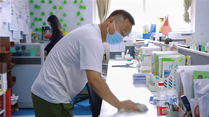 集结号吹响,南充一中细心规划、周密安排。为了给孩子们提供一个安全、卫生、舒适、整洁的校园环境,我校全体教职工齐心协力、分工明确,将每一个角落打扫得干干净净,教室、走廊、办公室、读书角……校园里到处涌动着老师们忙碌的身影,争取做到不留死角、不留盲区。