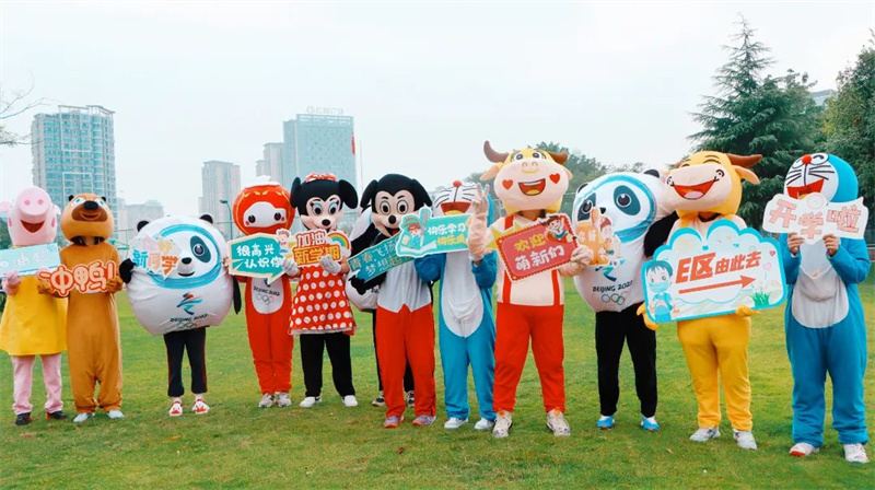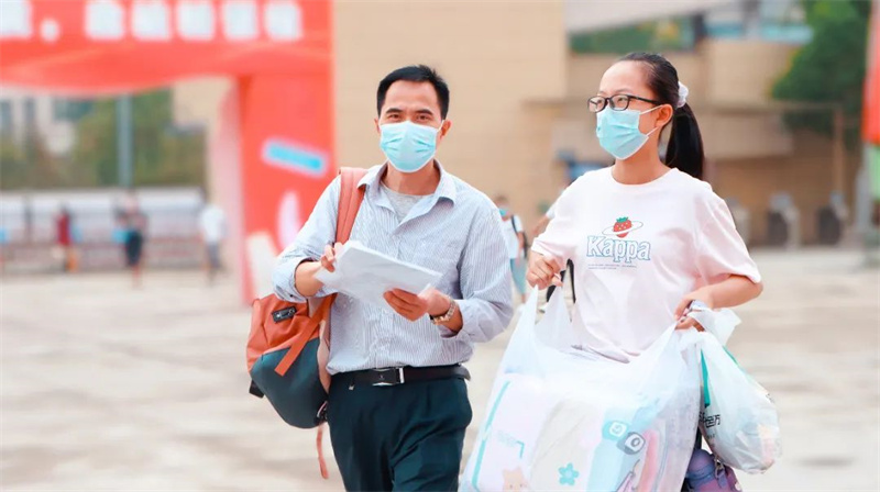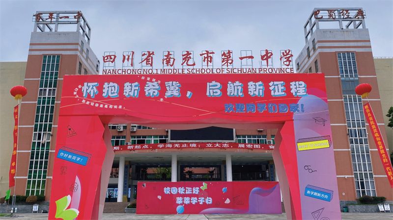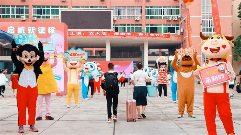 南充一中的校园里已随处可见志愿者们忙碌的身影。聚焦学校门口,身着可爱玩偶服饰的学长们正热情地向你们挥手。在学生志愿者的引导下,随着人流穿过高耸的红色拱门,在合影墙前摆上喜欢的pose,定格这愉快又难忘的入学瞬间。迎着朝阳向你们走来的还有亲切的教师志愿者,他们用温暖亲切的笑脸耐心地为新同学们解疑答惑,指引方向,让人倍感亲近、如沐春风。
