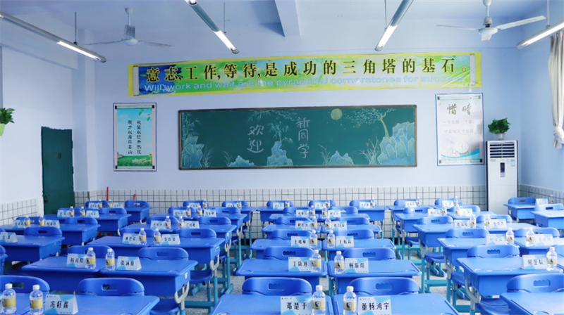 兢兢业业的班主任老师们提前到岗,积极准备班级布置相关事宜。 他们挥洒汗水,精心布置,心怀满满的期待!每张课桌上都贴心地准备了桌牌和矿泉水,黑板上有老师们精心设计的欢迎词,办公室和走廊都被鲜花绿植簇拥,目之所及,皆是满目芳华!