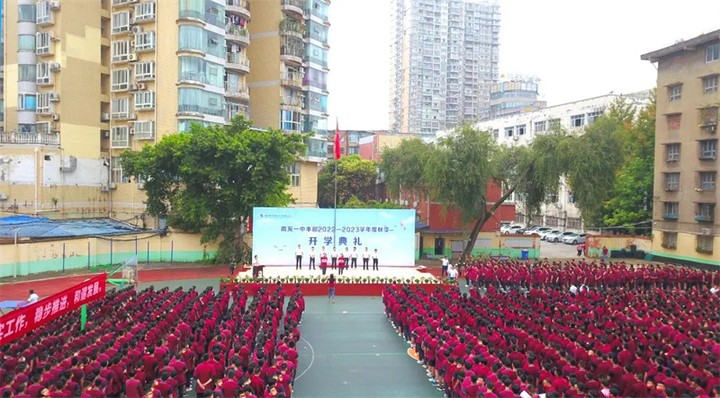 天高云淡,露澈风清,在和煦秋阳的见证下,南充一中本部2022—2023学年秋季开学典礼于9月19日上午在田径场隆重举行。执行校长马鸣、校长助理李学林及全体师生参加开学典礼。大家欢聚一堂,共同为新学期翻开扉页。