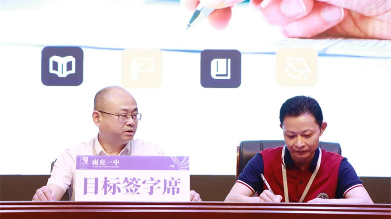 随后两个学部分管领导与初三班主任签订目标。他们的笔下,不仅是一纸中考目标责任书,也是一份充满希望的梦。