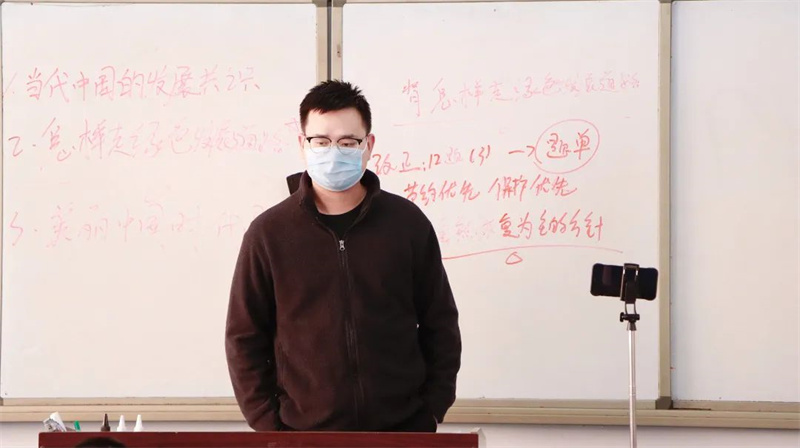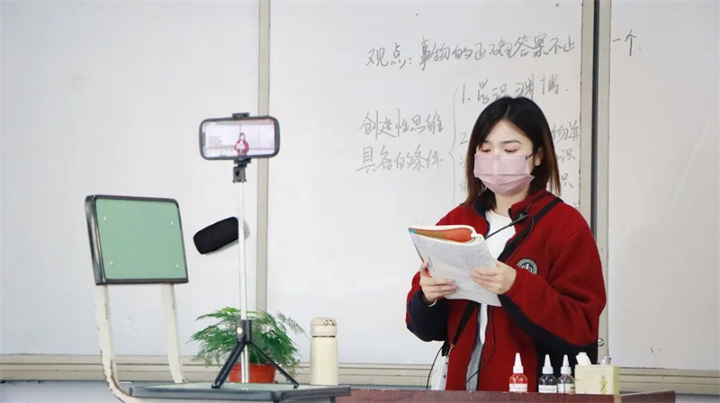 线下授课并同步线上直播,充分考虑到回家和留校两部分同学,确保每位学生不落下任何一节课。虽然很多同学不在学校,偌大的教室显得些许空旷,甚至有些教室空无一人,但是老师们仍然兢兢业业,打起十二分精神,不会因为疫情有所怠慢,不会因为少了学生状态下滑。各位老师迅速切换角色,摇身一变成为“主播”,专业的直播道具,手机、电脑、支架、扩音器、补光灯....每一样道具都是为了学生听到课、上好课。疫情没有阻挡我们学习的步伐,南充一中师生携手同行,共克疫情难关!