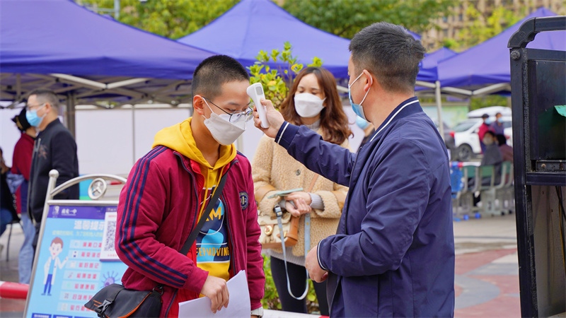 每一个环节,每一个细处,都为学生们错峰入校充分准备。学生们佩戴好口罩,在老师的引导下,间隔一米排队,有序进入测温棚,经过仪器人脸识别、体温监测无误后,开心而又期待地踏入熟悉的校园,翻开“线下”校园生活的新篇章。
