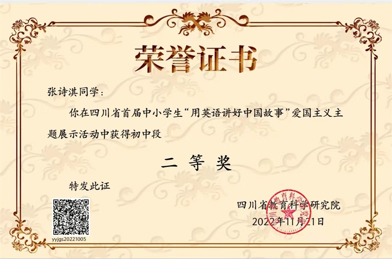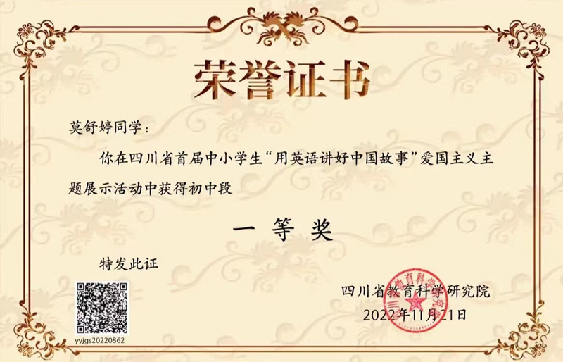 个人奖项:2021年全国基础教育英语综合能力竞赛(习思能力竞赛)全国一等奖