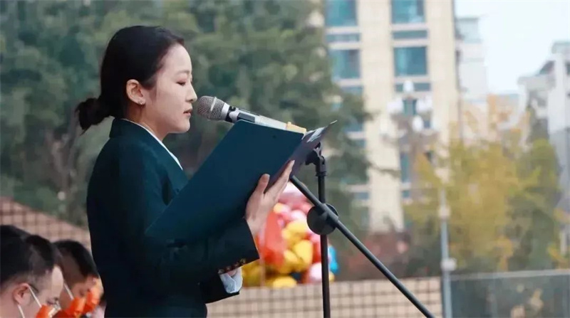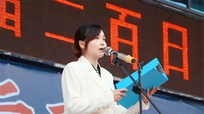 “重塑目标,迎难而上,竭尽全力,利用资源”是谆谆的教诲。 “命运对勇士叫嚣,你无法抵御风暴,勇士坚定地回应:我就是风暴”是满满的信心。初三班主任代表龚婷婷老师以高昂的气势,澎湃的热情感染了在场的所有人。
