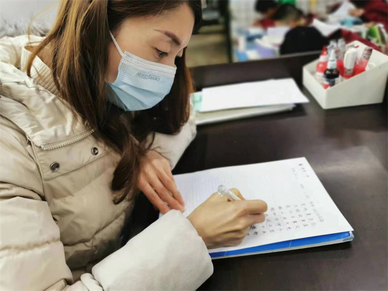 每个人用自己手中的笔在纸上奏出一曲动人的乐章,将那古老文字的独特韵律缓缓奏进每个人的心田,感受着那历经千年仍就焕发无限生机的文字魅力。
