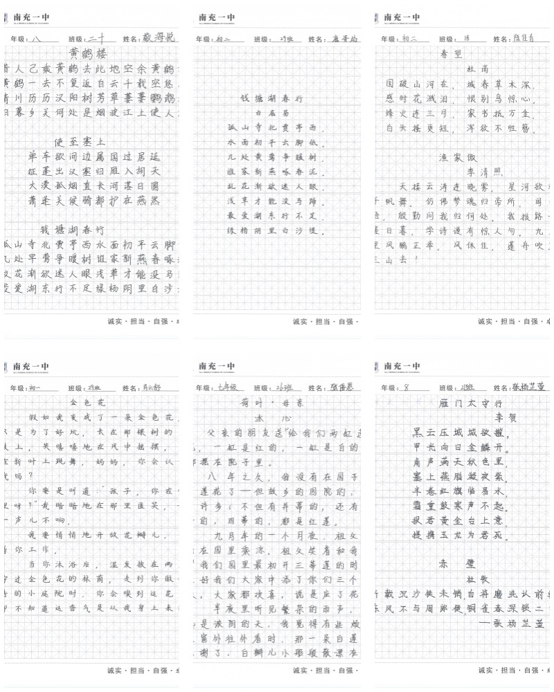 2.每班书写完成后,所有作品交语文老师,各班语文老师再每班精选3~5组,交各年级语文组。