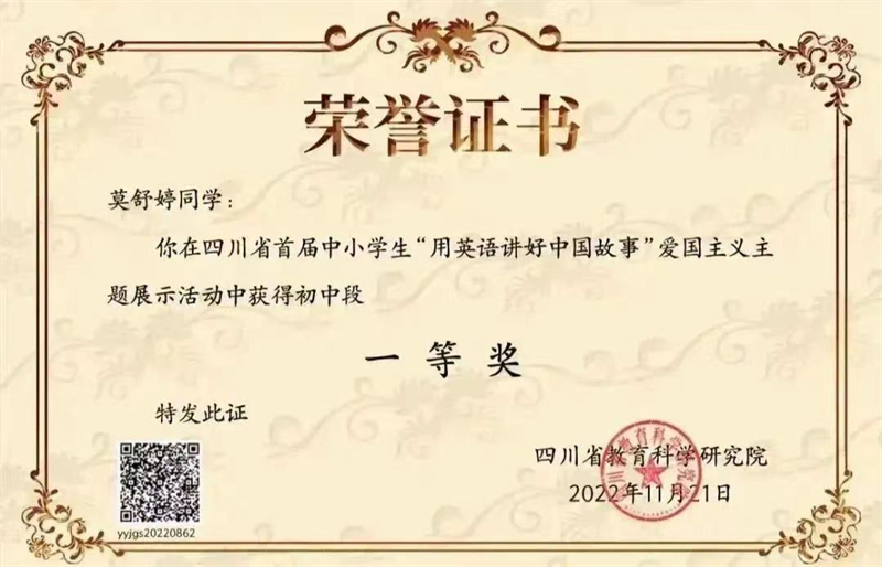 四川省“用英语讲好中国故事”主题活动获奖