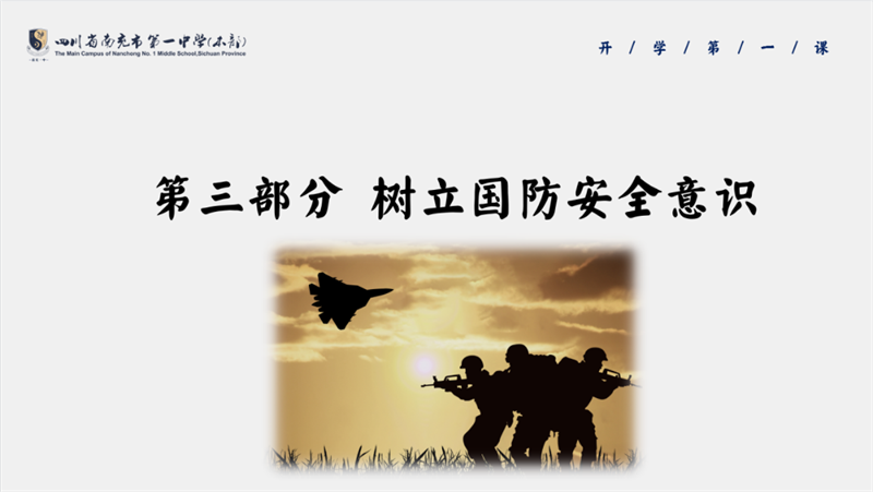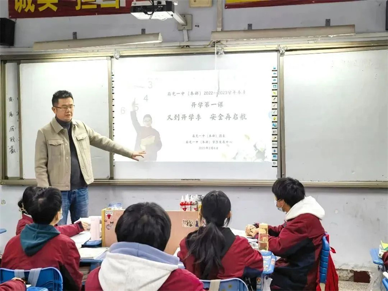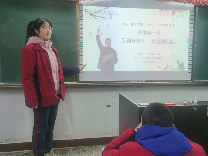 人间二月,冬在脚尖,春在眉睫。风中还带着料峭寒意,柳梢却透露着春的讯息。伴随着春日的到来,新学期正式来临。2023年2月6日,阳光洒满校园的每个角落,南充一中(本部)全体学生也穿上校服,背着书包,踏入校园,重回教室。为普及国防安全知识,提高学生安全素养,积极预防各类意外发生,南充一中(本部)在开学的第一天,开展了以“又到开学季,安全再启航”为主题的“开学第一课”活动。