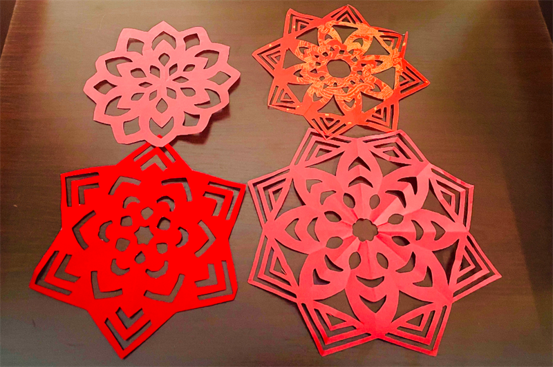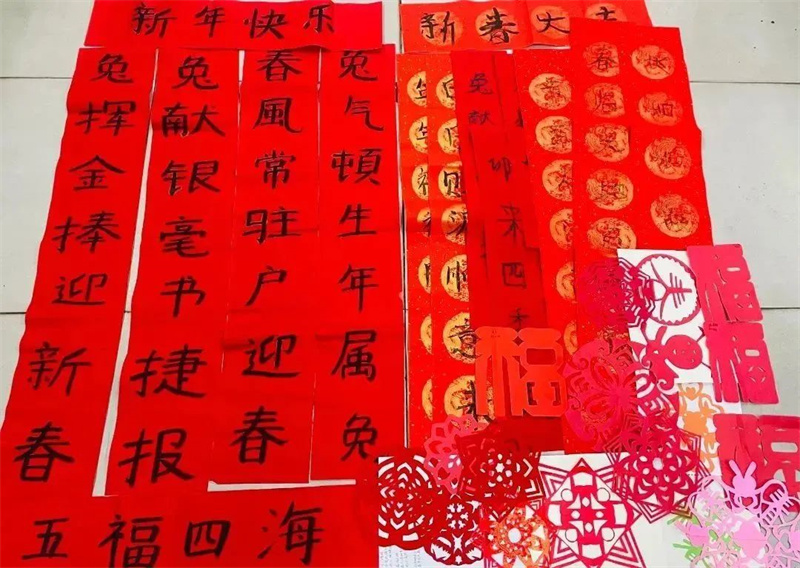 “千门万户曈曈日,总把新桃换旧符。”贴春联、写福字、剪窗花、挂灯笼是春节必不可少的习俗,这些年俗里有说不完的故事,道不尽的风情。过年了,同学们都积极参与其中,品味的年滋味:亲手写个福字,亲手写副春联,亲手剪一幅漂亮的窗花,亲手把精美的灯笼挂上,亲自将美好的愿景迎进家门……大家都在实践中感受淳厚的乡风民俗和浓郁的年味,感受中华文化的博大精深。