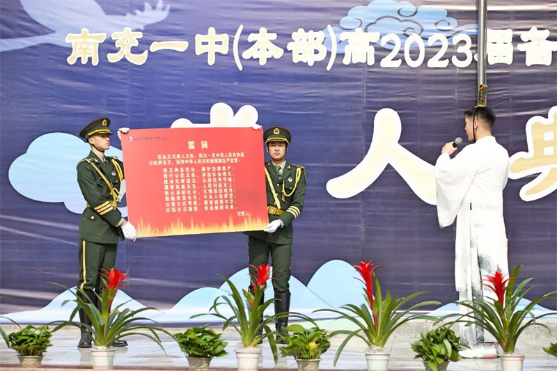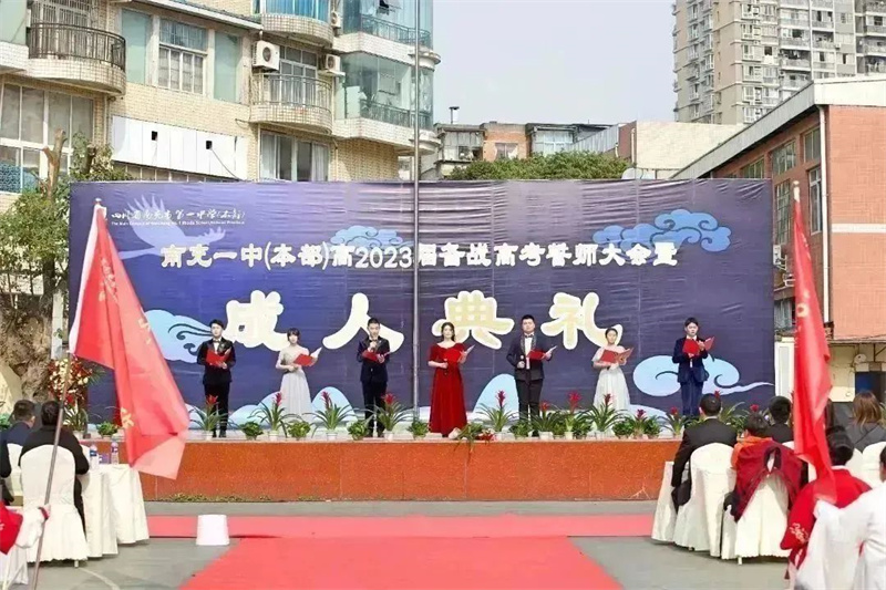 又是一年春风送爽暖心日,又是一年阳光明媚好景时。2023年2月24日,南充一中(本部)高三成人仪式暨备战高考誓师大会于田径场隆重举行。共青团南充市顺庆区委书记文章、南充一中(本部)执行校长马鸣、南充一中董事会监事叶云雄、南充一中校长助理、本部纪检室主任李学林、(拟任)南充一中校长助理韩宇辉,南充一中(本部)高三全体师生以及学生家长出席典礼。