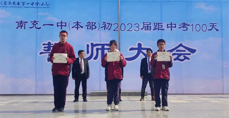 少年何惧涉远道,兴师已定云霄志。为激扬初三师生士气,点燃拼搏的豪情,坚定必胜的信念,3月3日上午,南充一中(本部)在田径场举行2023年中考百日誓师大会。南充一中(本部)执行校长马鸣、校长助理李学林、校长助理韩宇辉、南充一中(本部)部分行政领导,初三师生参加大会。大家齐聚一堂,祝福同学们不负青春,宏“兔”大展!