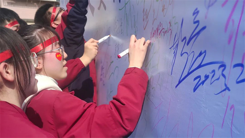 初三学子纷纷来到许愿墙前