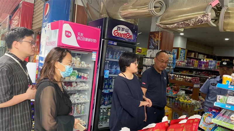 检查组对校园周边小超市、小卖店、文具店等场所进行详细检查,仔细检查经营单位是否销售无合法来源的食品,是否上架销售违规违禁物品、包装破损、腐败变质、过期临期食品,是否制售假冒伪劣、过期变质、“三无”商品等行为。
