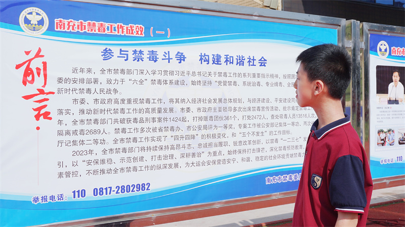 同时通过展板展示了南充市禁毒工作成效,同学们对毒品犯罪和相关法律有了更深刻的认识,并对禁毒民警的工作有了更深入的理解。