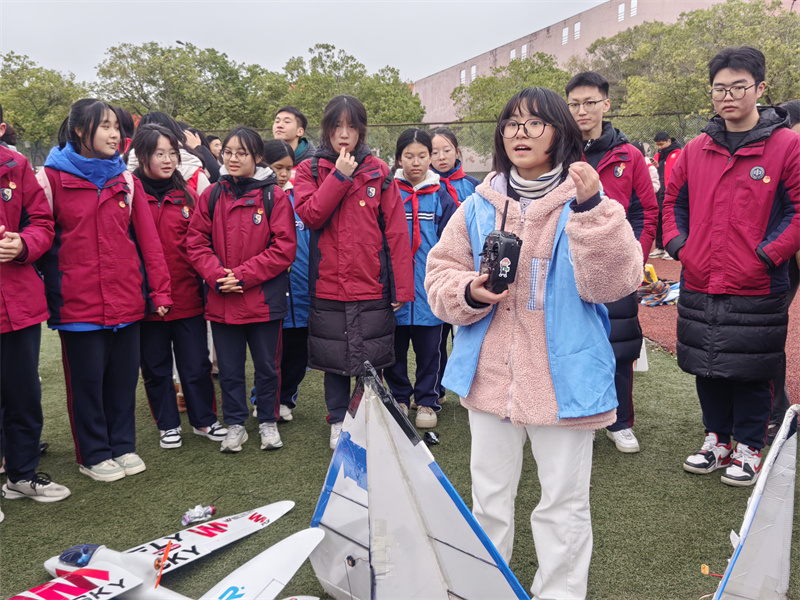 上午9点,物理与天文学院川东北航模基地志愿者为同学们带来了航模飞行演示,一场精彩纷呈的航模表演于开阔的操场上举行。那一架架形态各异、制作精巧的航模,似矫健的雄鹰,在蓝天白云间展翅翱翔,为学生们带来了一场震撼心灵的视觉盛宴,也在学生们心中种下了科技与梦想的种子。