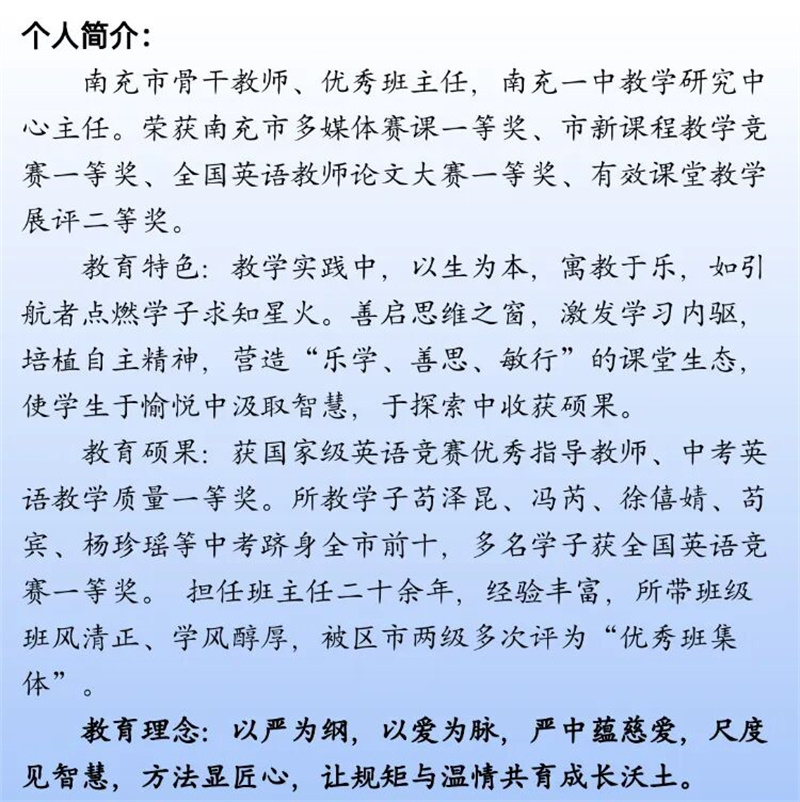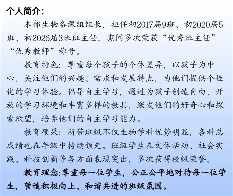 团队中涌现出多位省、市、区级教学骨干、学科带头人和优秀指导教师,多人次指导学生荣获国家、省、市各级竞赛一等奖,多位教师在各项大赛中屡获殊荣,以扎实的功底与无私的奉献,持续书写着育人路上的熠熠华章。