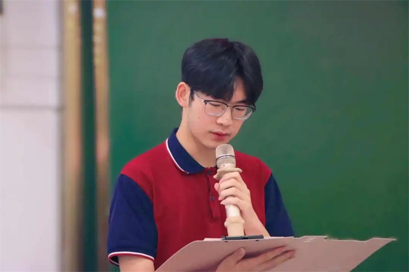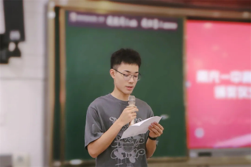 优秀学生代表费相龙同学首先祝贺了段海林学长取得优异成绩,并表示全体高2026届今后将以学长学姐们为灯,接过专注、坚韧、踏实的火炬,去点燃自己心中未曾动摇的梦想,并期望明年金秋在更高处再次相遇。