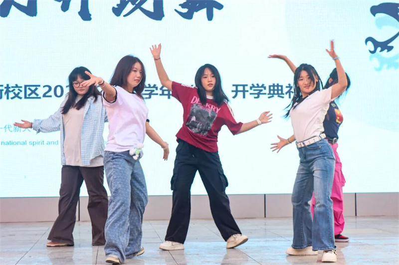 舞势随风散复收,歌声似磬韵还幽。开学典礼在青春洋溢、活力四射的开场舞中正式拉开帷幕。校舞蹈团的同学们以一段热情奔放的舞蹈点燃全场,她们用跃动的身姿和灿烂的笑容,化作跃动的音符,瞬间点燃了秋日的校园。每一个动作都充满力量,每一个节拍都彰显激情,不仅展现了一中学子蓬勃的朝气与艺术素养,更寓意着新学期梦想的启航与青春的绽放。