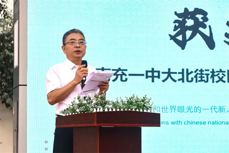 南充一中副校长韩宇辉发表讲话。他隆重宣布了南充一中大北街校区2025届中高考取得的辉煌战绩,并特别强调了“低进高出”的教育奇迹。这都归功于学校"五大意识"引领、精细化管理及高效课堂改革的有效实践,最后号召全体师生以智慧与勤奋共谱一中新篇章。