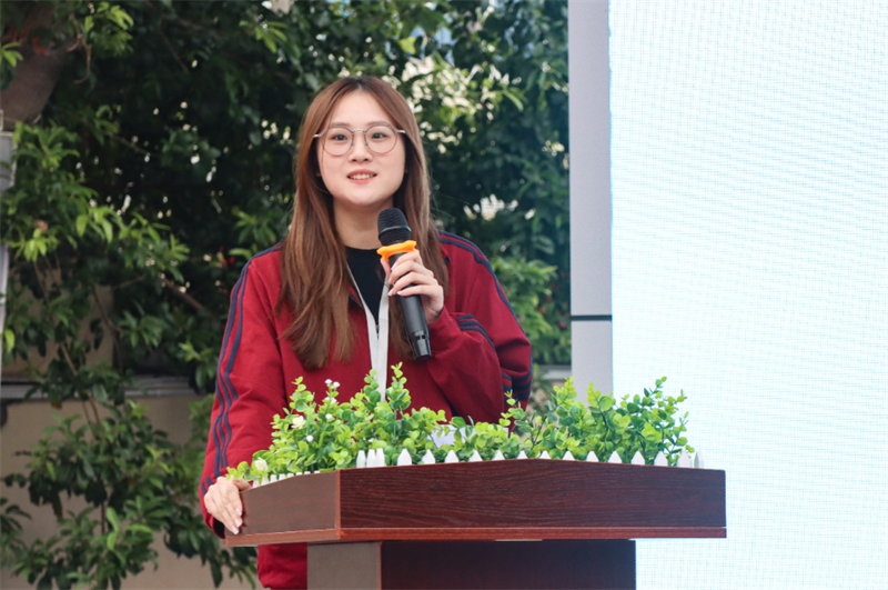 教师代表成凯鸽以“晨光中的教案与星光下的批改”为喻,深情诠释贵高精神:“那是晨曦中匆匆的脚步,是深夜里不灭的灯光,更是师生共筑的教育图谱。”她号召全体教师做学生成长的引路人。同时,她勉励全体师生与学校同频,秉持长期主义,发扬吃苦精神,努力成长为无愧于一中培育的时代栋梁。