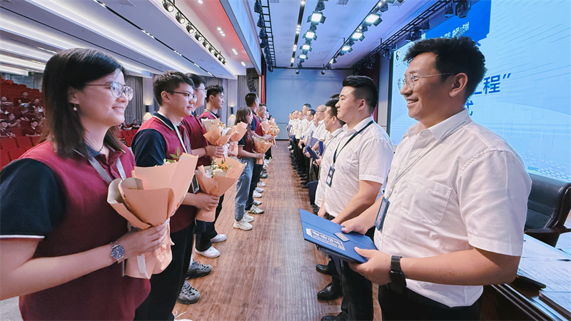 仪式上,首先邀请本次师徒结对的导师们登台,领导为导师们颁发聘书。这张小小的聘书,不仅是对导师们教育经验与能力的认可,更是一份 “文化传承的火种”、“责任担当的契约”。随后,徒弟们上台向导师献上鲜花,以最真挚的方式表达敬意与学习的决心。鲜花承载着传承的希望,也象征着南充一中班主任队伍 “传帮带” 优良传统的延续。仪式现场氛围温馨而庄重,大家共同期待师徒携手,在教育路上共学共进,助力学校班主任队伍焕发更强活力。