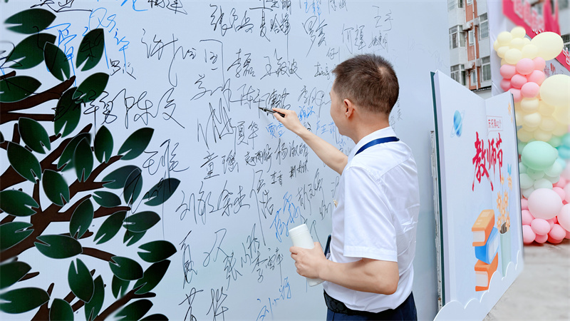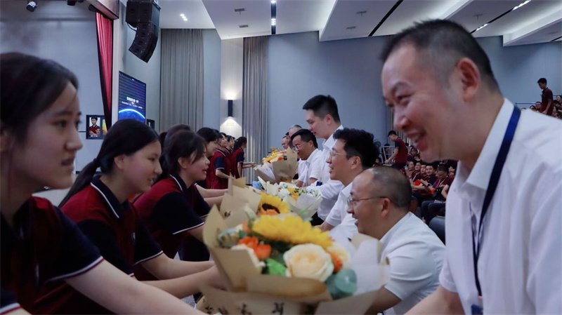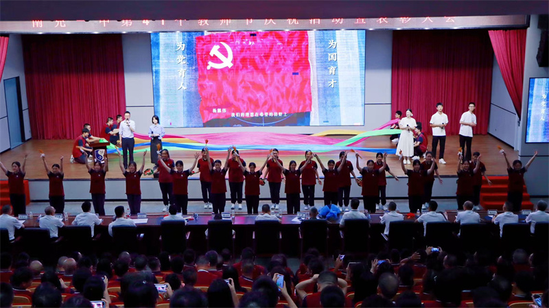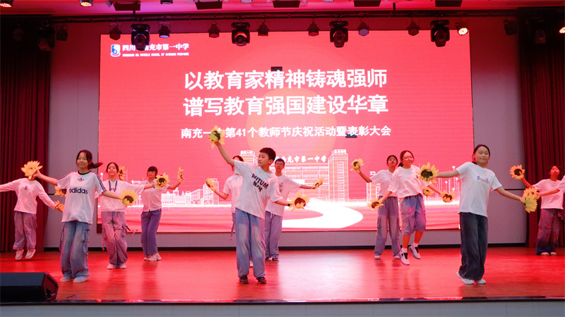 “每条大街小巷,每个人的嘴里,见面第一句话,就是恭喜恭喜”,每逢欣喜,熟悉旋律总会响起。9月9日上午10;00,“南充一中第41个教师节庆祝活动暨表彰大会”隆重举行,鲜明的行业盛典,新晋的师者荣耀,将成为整个南充一中的价值观和风向标。我们在“恭喜”的氛围中实现文化传承的身心合一,迎来新时代兴国教育精神的共振和进级。然最初这句“恭喜”,是80年前黎庶对抗战胜利的欢呼雀起,是漫漫长夜终迎黎明定格下的穿越烽火后民族悲喜交加的集体表情。“四万万人齐蹈厉,同心同德一戎衣”,首首歌曲、诗歌传颂,到红色课堂的代代传递,再到捍卫中华民族文明成果与人类和平事业宣誓于抗战胜利80周年之际,总书记重要讲话——“中华民族伟大复兴势不可挡!”穿越时空,激荡人心。大道之行,壮阔无垠,南充一中以高质量文化体系奠基民族复兴,育人才、聚动能、夯台基,从未停止创造奇迹的契机。