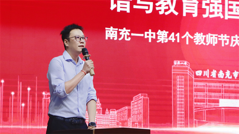 南充一中校长陈平向全校教职工致以节日诚挚祝福,向受到表彰的先进个人表示热烈地祝贺。他讲道,教师,是立教之本、兴教之源,“心有大我,至诚报国”的教育家精神是时代价值的生动呈现,似万千萤火,虽不耀眼却足以照亮整片星河。我们和衷共行、勠力同“心”:以奉献砥砺初“心”,以实干锤炼韧“心”,以理念树立恒“心”,以品位铸就匠“心”。建设了适合学生自主选择的特色课程,打造了适合学生自主学习的探究课堂,创造了适合学生自主塑造的主体德育,构建了适合学生自主评价的考评体系,强化了适合师生自主发展的科研能力。逐年来学校办学条件愈发完善,教学质量稳步攀升,师资队伍持续强化,教育政策全面落实,教育品牌越叫越响。忠诚履责,争做敬业楷模;笃信好学,争做学习楷模;锐意创新,争做育人楷模;关爱学生,争做师德楷模。誓做坚定理想信念、强国有我的弘扬者;誓做涵养专业水平、学生成长的引领者;誓做树立报国大志、挺膺担当的奋斗者。