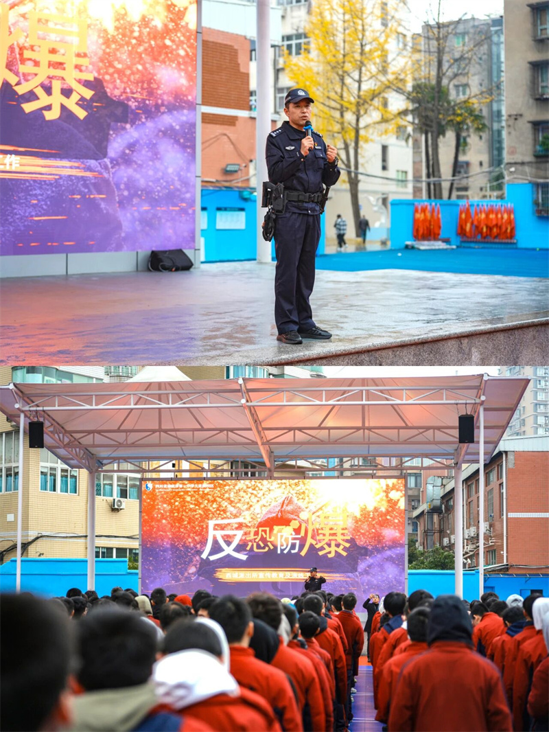 活动伊始,江警官面向全校师生,进行了一场深入浅出的反恐防暴知识专题讲座。他结合真实案例与当前安全形势,详细讲解了恐怖主义、暴力行为的特征与危害,重点传授了在校园内外遭遇突发暴恐事件时的 “跑、躲、报” 核心应对原则:如何快速辨别危险、选择正确逃生路线、寻找安全区域隐蔽、以及如何及时有效报警。江警官强调,安全意识是每位师生必备的“心理防护装备”,只有思想上高度重视,才能在关键时刻保持冷静,科学自救互救。生动的讲解让反恐防暴知识深入每一位师生心中。