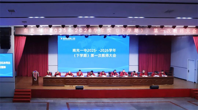 3月2日上午9:00,南充一中隆重召开“2025-2026学年度(下学期)第一次教师大会”,校长陈平、党委书记成明贤及全体校级领导、全校教师参会。剖析现状,纾解即时蹇塞;洞悉未来,描述工作职责。