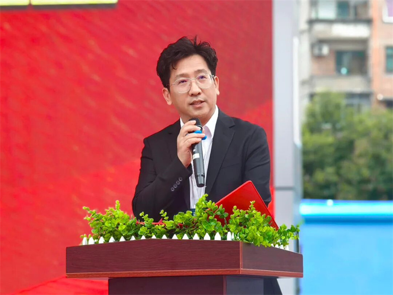 南充一中本部执行校长韩宇辉上台讲话,勉励全体毕业生在最后一百天里保持定力、坚定信心、科学备考。他引用“千淘万漉虽辛苦,吹尽狂沙始到金”激励大家,唯有经历磨砺,方能迎来辉煌。