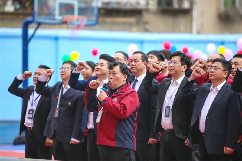 在李剑波老师的带领下,全体初三高三教师庄严宣誓:恪尽职守,倾囊相授,与学生同甘共苦,共赴百日征程。春蚕到死丝方尽,蜡炬成灰泪始干。老师们用誓言诠释责任,用行动守护希望。