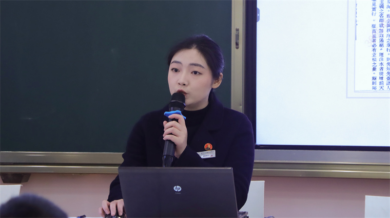 课堂上,宣讲团老师围绕七大核心篇章,以深厚的历史底蕴、生动的叙事风格,深情回望了张澜先生在民族危亡之际的壮阔人生。从先生波澜壮阔的生平脉络入手,回溯抗战前奏的时代危局;从他奔走呼号、推动全面抗战动员的热血征程,到坚持教育救国、以文化唤醒民众的远见卓识;从鼎力支持川军出川抗战的家国担当,到以政治力量凝聚共识、团结抗日的政治智慧,再到抗战胜利中彰显的民族大义与不屈精神。张澜先生作为伟大的民主革命家、教育家,其一生心系家国、坚守大义、廉洁奉公的崇高品格,在宣讲中栩栩如生,深深震撼了在场每一位一中学子的心灵。