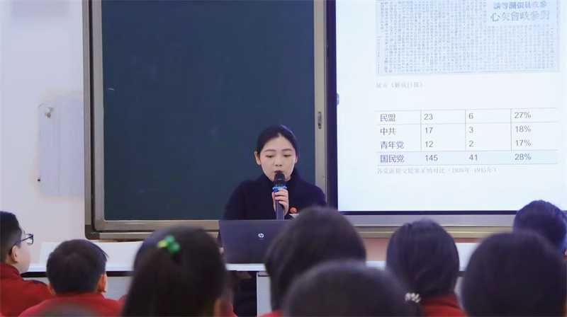 为传承红色基因、赓续红色血脉,加强青少年思想引领与爱国主义教育,3月10日下午,张澜纪念馆宣讲团受邀走进南充一中,为初一年级学子精心讲授了一堂以“抗日烽火中的张澜”为主题的高质量思政课。