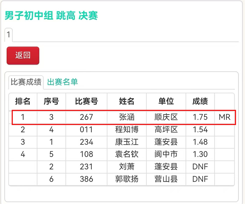 张涵:跳高 第一名