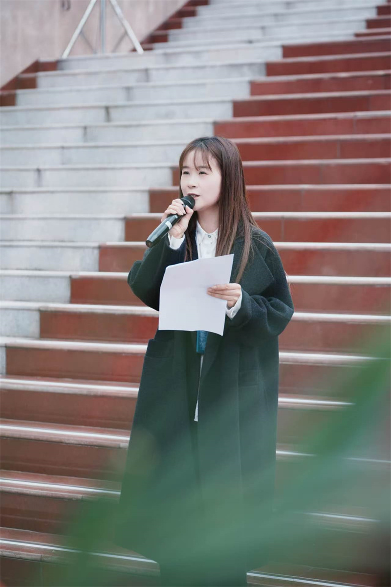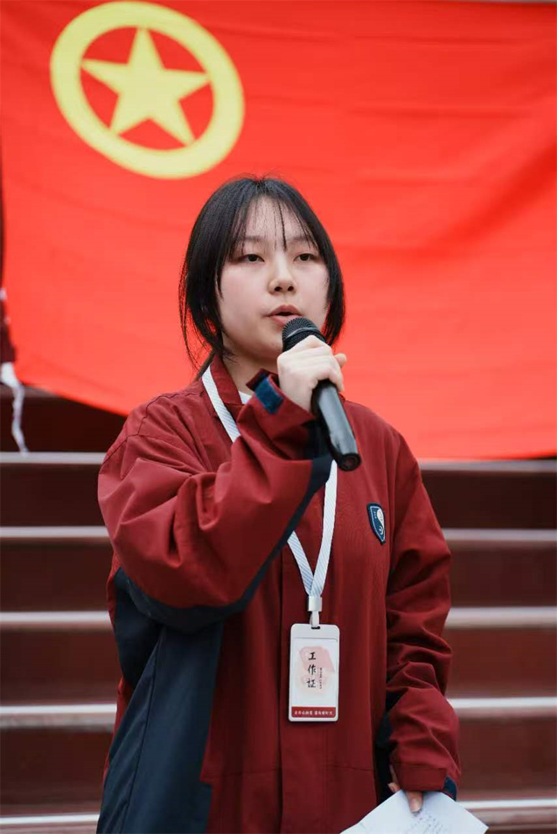 顺庆区优秀共产党员李凤君老师深情致辞。她将革命先烈的奋斗历程与建党105周年、红军长征胜利90周年的历史意义相结合,深情回顾先辈们为民族独立抛头颅、洒热血的峥嵘岁月。她寄语全体团员,要以先烈为榜样,铭记长征精神、传承红色血脉,将红色基因融入血脉,把青春奋斗融入时代发展,勇敢新时代青年的责任与使命。